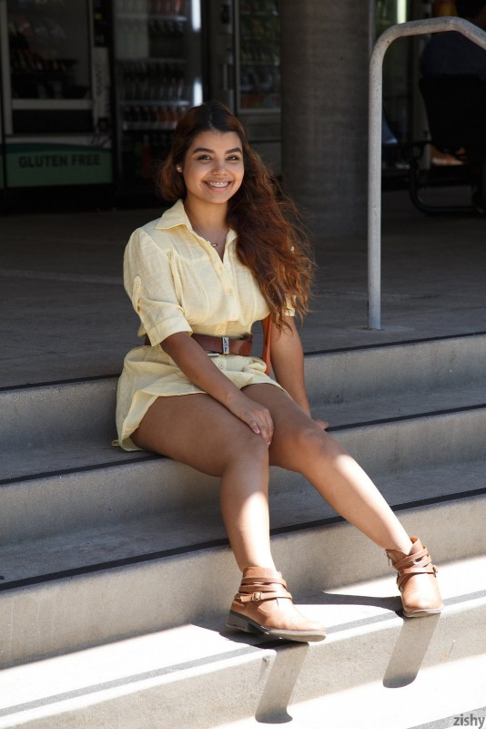 Аппетитная пышная латинка с большой, но довольно возбуждающей жопой красуется перед камерой прогуливаясь по безлюдным улочкам своего города и задирая юбку. Девушка без стеснения демонстрирует сочные ягодицы которые еле вмещаются в трусики и постоянно норовят выпрыгнуть из них. Смуглую пышечку же это совсем не смущает, напротив, она охотно позволяет насладится своими булочками настоящим ценителям мясистых женских форм...
