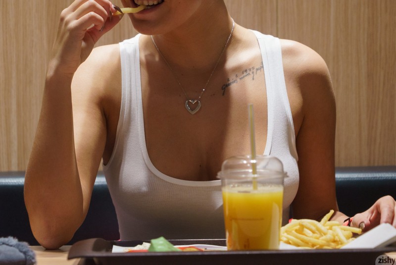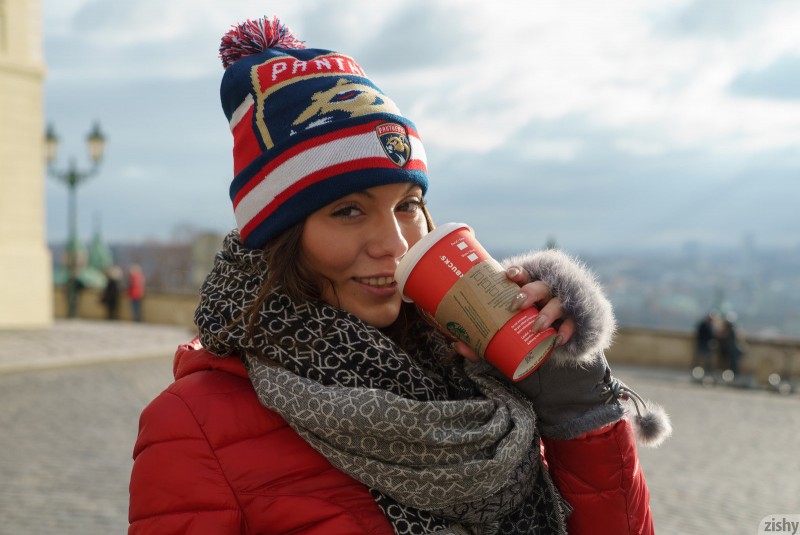 Сексуальная девушка в куртке показала упругие сиськи прямо на улице, среди случайных прохожих. Началось всё с того что красавица гуляла по одной из европейских улиц, позируя при этом перед фотокамерой. в одни прекрасный момент она расстёгивает куртку и оттуда выглядывают красивые сиськи с миленькими сосками. когда же девушке стало прохладно, она перебралась в кафе, где в белой майке продолжила соблазнять фотографа своим бюстом...