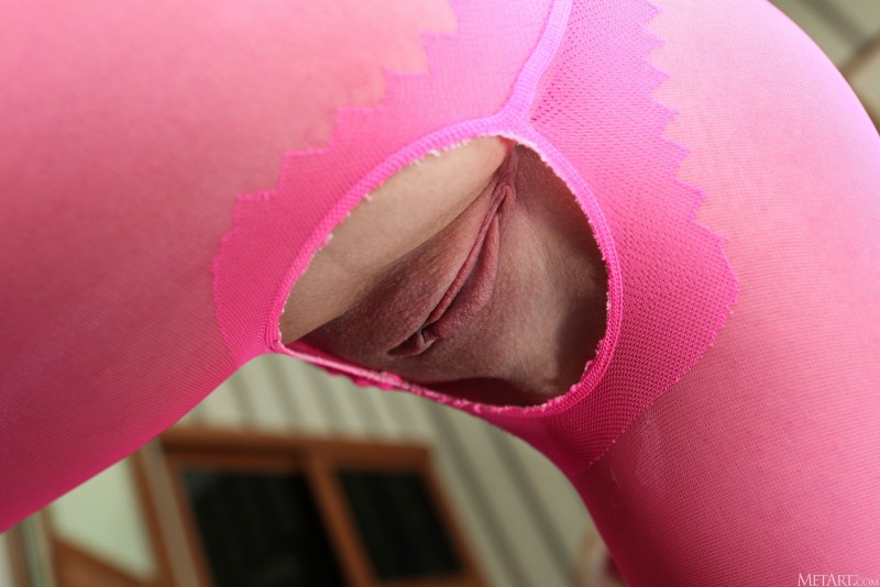 Молодая сексуальная блондинка с голыми упругими сиськами медленно снимает перед камерой обтягивающие розовые колготки с огромной дырой в промежности. Затем голая телочка с шикарными возбуждающими прелестями энергично меняет на кровати самые откровенные позы и, бесстыже задирая длинные ноги, крупным планом демонстрирует нам свою сочную розовую пизду.