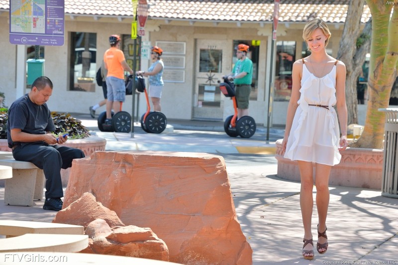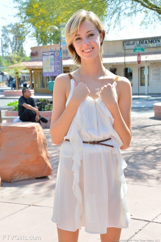 Развратная девушка гуляет тёплым летним днём в прозрачном платье без трусиков под ним. При этом красавица не стесняется периодически задирать подол и показывать нам свою голую письку с попкой. А когда героиня нашего фото сета нашла на улице в городе местечко поукромней, там, устроившись на траве она начала страстно ласкать свою киску под платьем, переходя даже на фистинг...