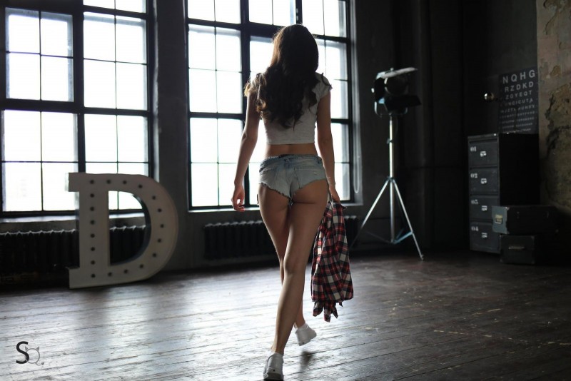 Сногсшибательная девушка с красивыми упругими титьками среднего размера обнажилась в фото студии что бы порадовать нас с вами шикарными ню фото в превосходном исполнении. Гуляя в полумраке, брюнетка демонстрирует перед камерой то свою красивую грудь, то потрясающую попку в тесных и очень коротких джинсовых шортиках.