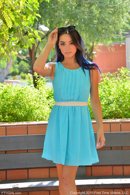 Озорная, безумно сексуальная брюнетка отправилась гулять по городу в лёгком платье без трусов. С собой красавица прихватила подружку с камерой. Оглядевшись в парке и убедившись, что рядом никого нет, шалунья задирает юбку радостно демонстрируя свою бритую киску. На коленях брюнеточки видны свежие ссадины, думается мне, что это не от падения...