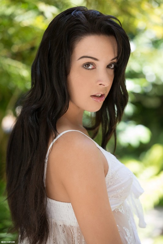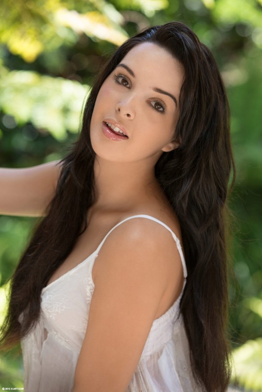 Сногсшибательная брюнетка с упругой грудью сняла белый пеньюар в саду и голая красуется перед камерой, демонстрируя нам свои аппетитные формы. У девушки не большая, но очень возбуждающая грудь с симпатичными сосками. А так же красотка может похвастаться красивой попкой и гладко выбритой киской, которую она то и дело ласкает пальчиками...