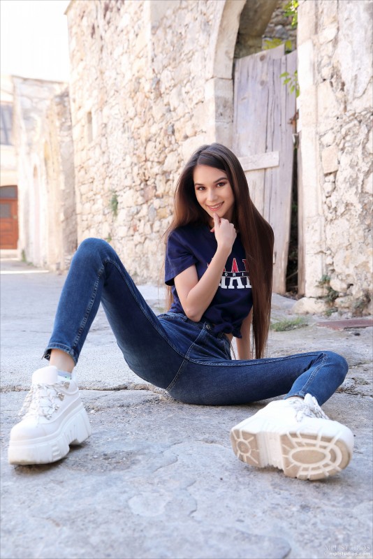 Спрятавшись от прохожих в безлюдном переулке, молодая извращенка бесстыже спустила с себя обтягивающие джинсы и показала на камеру свою голую упругую попу. Оголив миниатюрные упругие титечки, горячая детка как можно ближе выпячивает к нам свою промежность и во всей красе засвечивает пухлую сладкую киску, мелькающую между крепкими ягодицами.