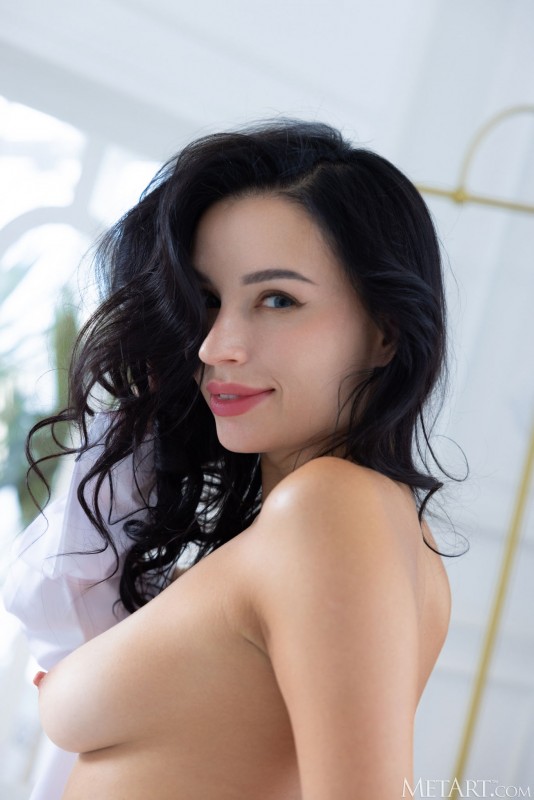 Медленно стянув с себя расстегнутую рубашку и белые трусики, голая сексуальная телка с миниатюрными титечками бесстыже показывает бритую киску на камеру крупным планом и в разных возбуждающих позах демонстрирует нам свои самые интимные нежные места.