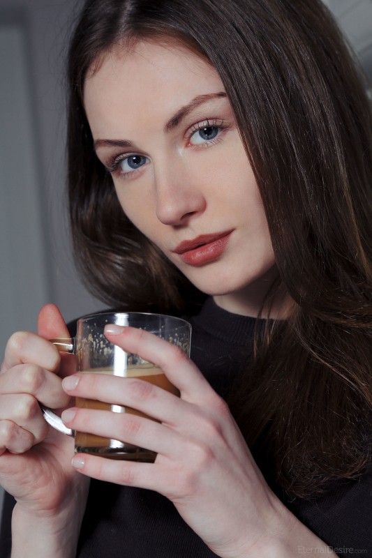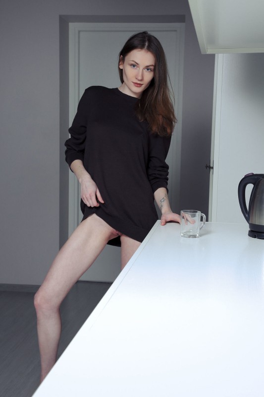 Молода брюнетка пьёт какао на кухне без трусов и в это же время позирует перед фотокамерой в руках своего бойфренда. Желая показать все свои прелести, девушка в скором времени полностью раздевается и совершенно голая продолжает хвастаться своей фигуркой. У неё шикарная упругая грудь, аккуратная маленькая попка и замечательная голая киска, которая терпеть не может трусы и предпочитает гулять без них...