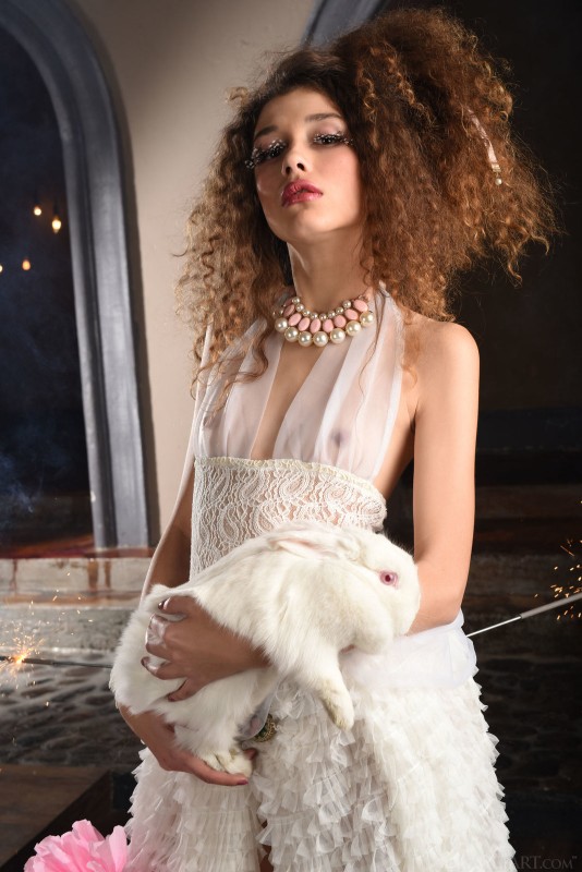Соблазнительная Алиса из страны чудес снимает платье с трусиками и голая позирует вместе с кроликом, которому явно нравится всё происходящее. Рады представить вам арт эротику с участием молодой девушки с маленькой грудью, которая очень старается представить нам образ знаменитой Алисы побывавшей в стране чудес...