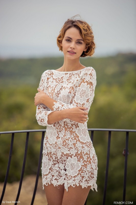 Обворожительная стройная красотка сняла кружевное платье под которым не было белья и без трусиков встала раком открывая нашему взору свою соблазнительную попку. Молодая девушка смотрится очень возбуждающе, её упругое тело буквально сводит с ума от одного только взгляда на него. А модель, прекрасно всё это понимая пользуется своим положением и принимая всё более откровенные позы она демонстрирует нам свою бритую киску, маленькую грудь и многое другое.