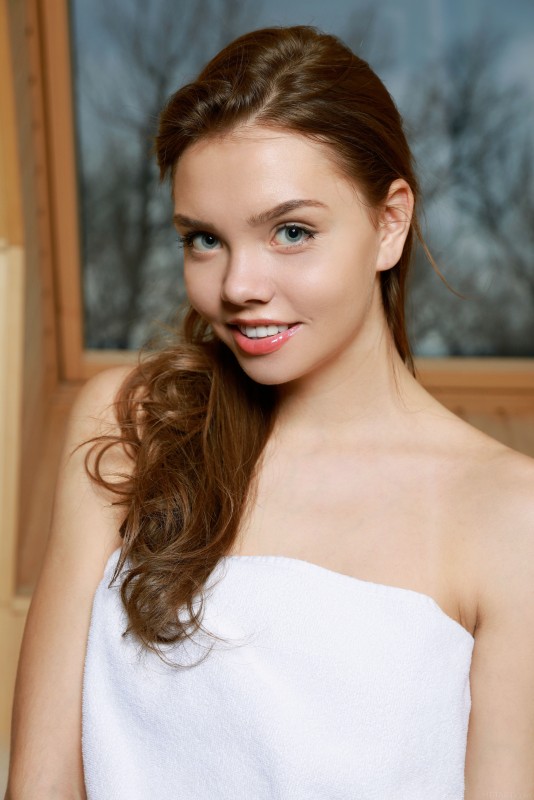 Сексапильная милая девушка с аккуратной маленькой грудью игриво позирует перед объективом фотоаппарата и соблазнительно показывает гладкую киску, которую скрывала под полотенцем. Обольстительница с набухшими от возбуждения сосками вальяжно раздвигала стройные ножки и совсем не смущалась своей наготы. Помимо перечисленных достоинств, озорница обладает сногсшибательной улыбкой и томным взглядом.