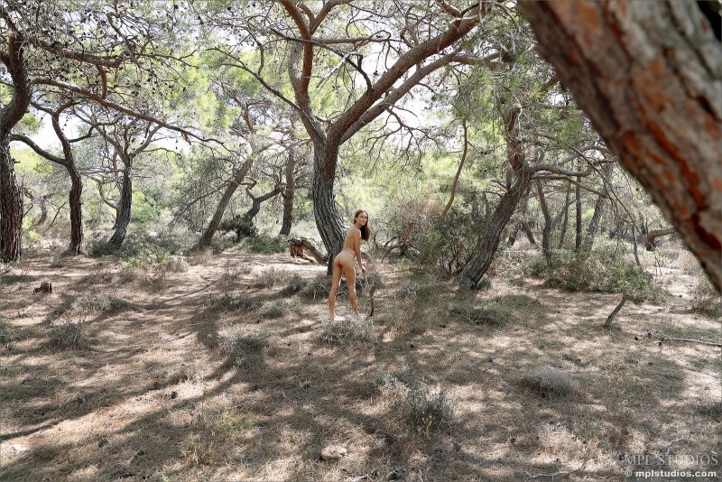 Забравшись подальше от посторонних взглядов, в редкий и засушливый лес, стройная красотка позирует обнажённой. В столь откровенном виде девушка демонстрирует маленькую грудь с красивыми сосками, бритую киску и худенькую попку. На лице же этой горячей красавицы, мы можем наблюдать выражение пылкой страсти, способной испепелить любого любовника.