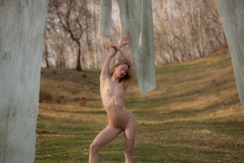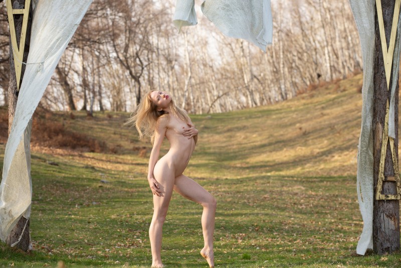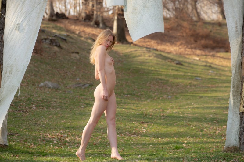 Фото эротика » Голые девушки » Голая блондинка с маленькими титьками на природе