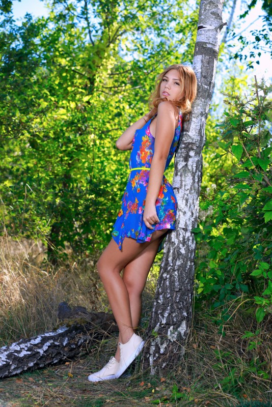 Озорная девица сняла платье на природе и голая встала раком под берёзой. Кокетка соблазнительно вертела упругой попкой перед камерой, позволяя разглядеть её со всех сторон. Кроме того, девушка показала красивую грудь небольшого размера и гладко выбритую киску от которой невозможно оторвать восхищённый взгляд.