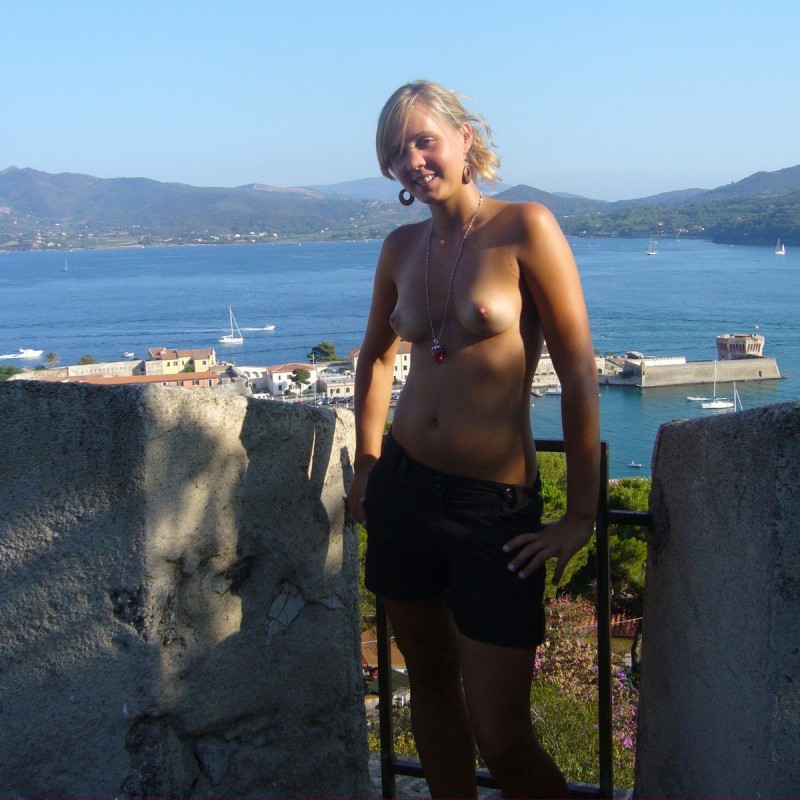 Предлагаю взглянуть на частное фото соблазнительной голой девушки отдыхающей на пляже. Начинается всё с того что девушка загорает топлес в песке, затем она решает прогуляться по курортному городку и вычистив трусики от песка отправляется на прогулку. Там красавица находит местечко поукромней и снимает трусики, демонстрируя нам свою голую попку и бритую киску.