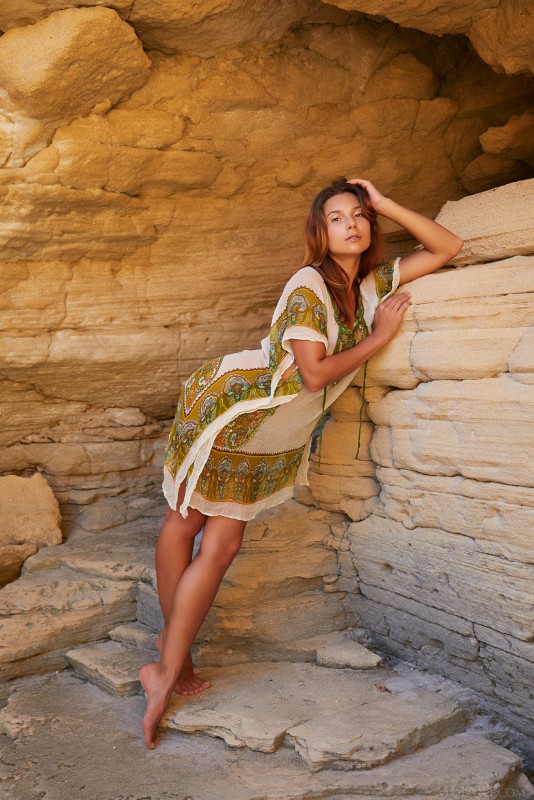 Обворожительная модель с ослепительной улыбкой сняла платье перед камерой под которым не оказалось белья. Оставшись совершенно голой, сексуальная девушка позирует на скалах, выгибаясь там словно кошка. В столь необычном месте, красавица позволяет нам взглянуть на её бритую киску с нежнейшими губками, упругую попку и симпатичную грудь с красивыми сосками.