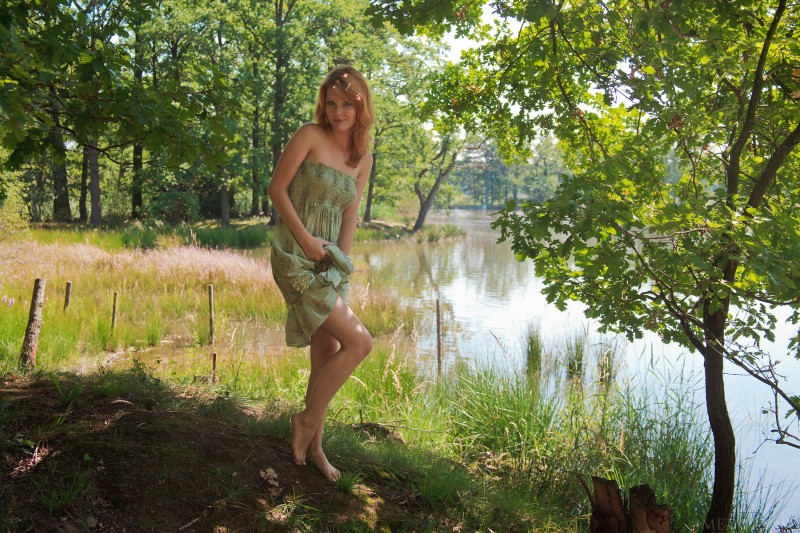 Обворожительная рыжая девушка сняла лёгкое летнее платье под которым не было трусиков и голая отдыхает на берегу реки в деревне. Красотка взяла с собой подружку которая не теряет времени даром и вооружившись фотокамерой снимает нашу героиню в самых соблазнительных и сексуальных позах.