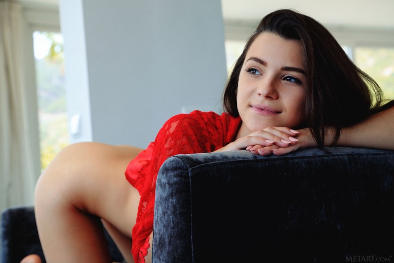 Соблазнительная брюнетка позирует в красном халате, который вскоре снимает и продолжает привлекать нас своим голым телом с упругими формами. Красавица вертит перед камерой сладкой попкой со смачными ягодицами, показывает бритую киску и небольшую грудь с аккуратными сосками.