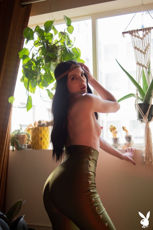 На необычной фото-сессии страстная брюнетка раздевается до гола на камеру, демонстрируя свое сексуальное горячее тело, готовое в любую минуту отдаться в умелые руки. Длинноногая телка чувственно изгибается всем телом, демонстрируя свои маленькие упругие титьки и сочные круглые бедра и задницу.