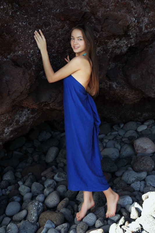 Спрятавшись в большой пещере, молодая брюнетка с красивыми упругими сиськами эротично скинула с себя парео и оголила свое стройное нежное тело. Голая красавица развратно ложится на землю и раскрывает перед камерой свою промежность с гладкой сладкой киской.