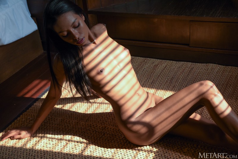 Красивая стройная негритянка эротично сняла с себя маленькое откровенное бикини, оголив перед камерой свое нежное горячее тело. Обнаженная шоколадка с миниатюрными упругими сиськами чувственно выгибается в спине и раздвигает ножки, крупным планом демонстрируя свою гладкую темную киску.