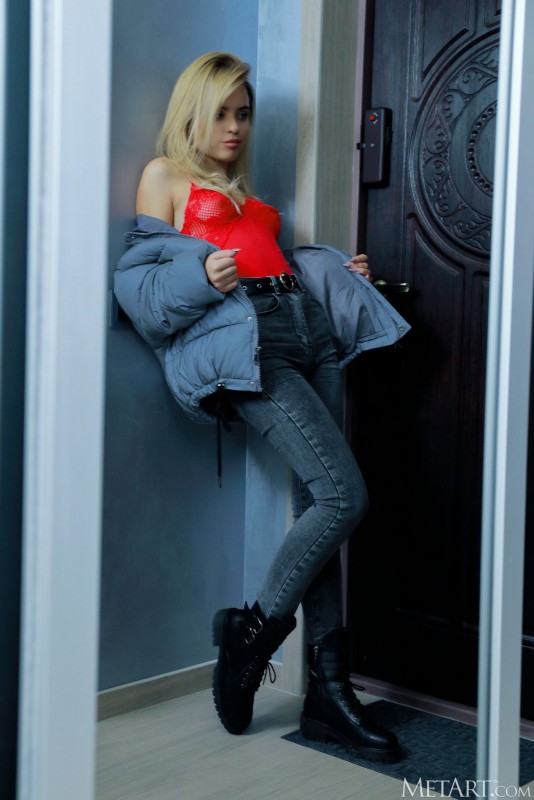 Медленно стянув с себя обтягивающие джинсы, молодая милая блондинка с аппетитной попкой на показ сжала ее своими шаловливыми ручонками и постепенно разделась до гола. Затем обнаженная девица разлеглась на диване и, встав в позу раком и гибко прогнув спинку, крупным планом выпятила свою бритую розовую киску.