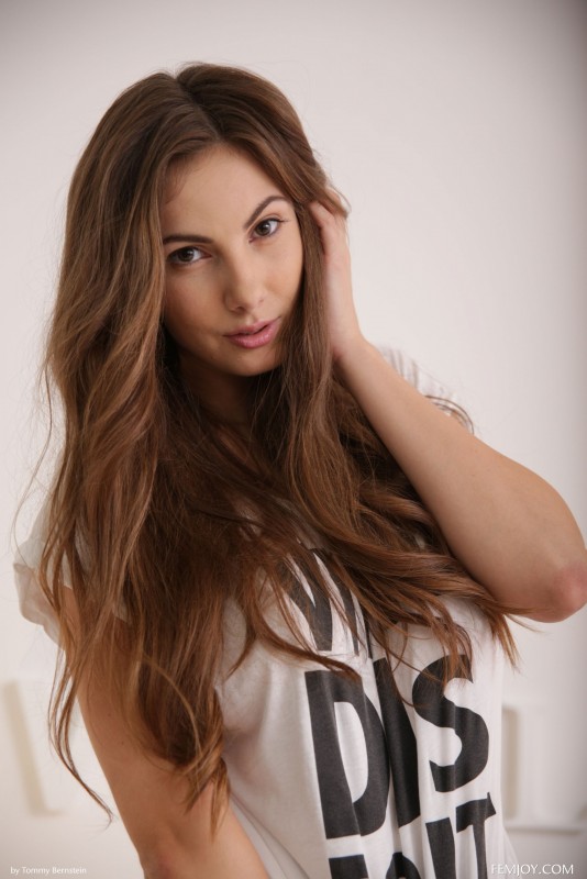 Возбуждающе медленно сняв с себя футболку и выставив на показ обнаженное шикарное тело, горячая секс бомба с большими натуральными буферами страстно позирует перед камерой, охотно демонстрируя с разных ракурсов свою аппетитную крепкую задницу с торчащей между булками пухлой писькой.