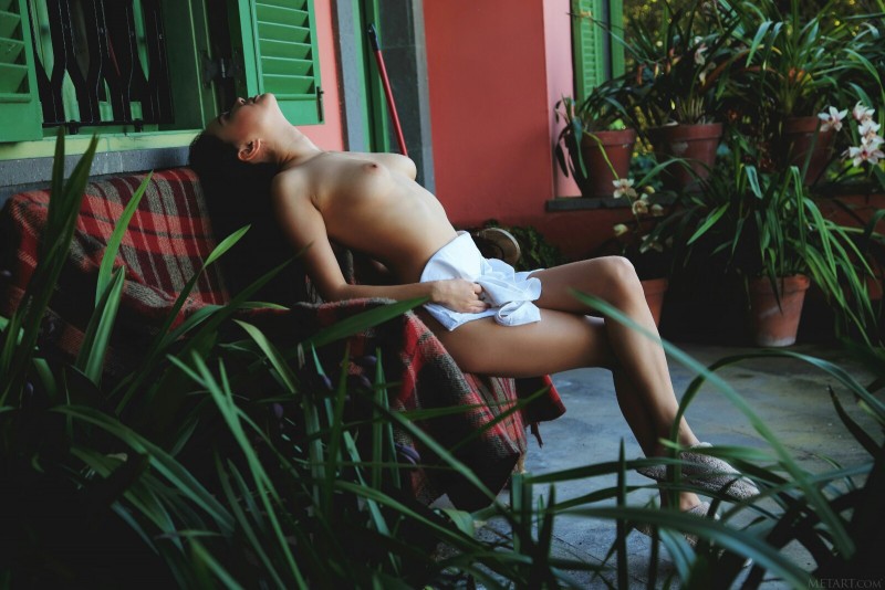 Молодая кокетливая соседка в майке без трусиков бесстыже светит перед всеми своей голой бритой писькой. Энергично позируя голышом на крыльце, бесстыжая брюнетка с натуральными сиськами умело заманивает в свои сети и нетерпеливо подставляет крупным планом свою раскрытую нежную промежность с манящими влажными дырочками.