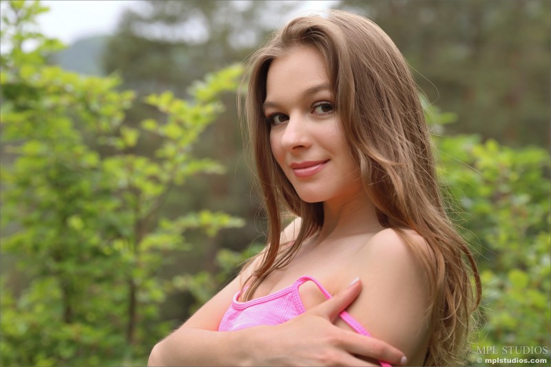 Энергично позируя перед камерой на фоне природы, молодая стройная девушка в коротких шортах и боди решительно сняла с себя всю одежду и оголила красивую упругую попку, развратно виляя ею в самых откровенных позах и с разных ракурсов засвечивая бритую сочную пиздёнку.