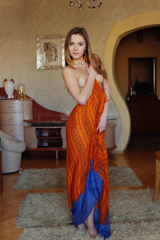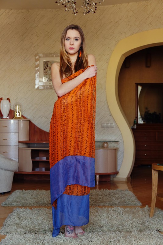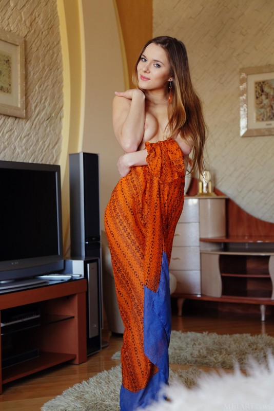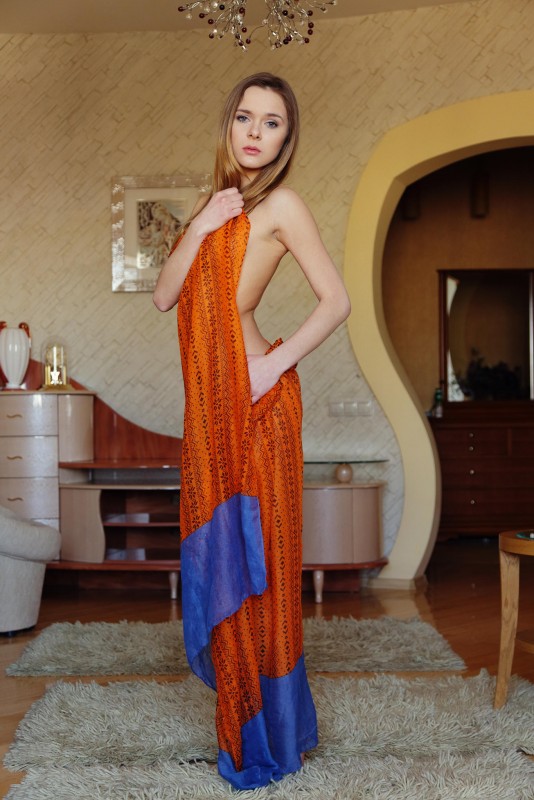 Игриво прикрывая свое тело шелковой тканью, голая эротическая модель с красивой попой профессионально принимает перед камерой самые возбуждающие позы. Затем обнаженная красавица с аккуратными титечками опустилась на пол и с широко раздвинутыми ногами принялась во всей красе демонстрировать нам свою бритую сладкую письку.