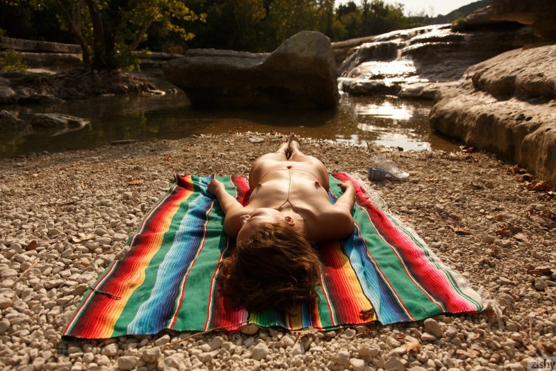 Соблазнительная стройная девушка разделась на речке и загорает голой, попутно позируя перед камерой и демонстрируя своё тело. У красотки маленькая грудь, аккуратная небольшая попка и бритая киска, которую модель так и не показала во всей своей красе. Сперва девушка купалась в речке, но вскоре ей это наскучило и устроившись на покрывале, которое она расстелила на камнях, милашка загорает и греется под лучами тёплого солнца...