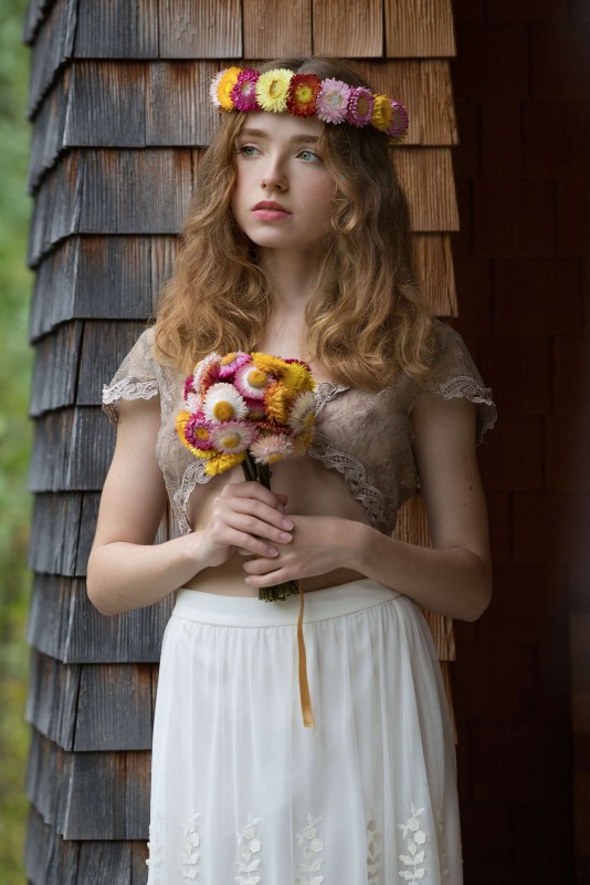 Постепенно избавившись от прозрачной кофточки и длинной юбки, молодая деревенская красавица с упругой пышной грудью оголила перед камерой свое соблазнительное тело и тут же принялась хвастаться своими выдающимися прелестями, мельком засвечивая между бедрами бритую писю.