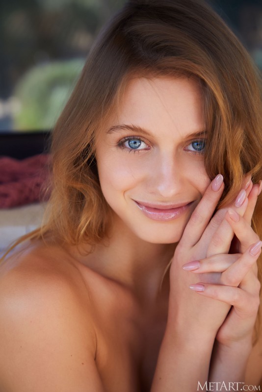 Быстро раздевшись до голы на террасе и удобно устроившись перед нами на диванчике, нежная куколка с плоской грудью вовсю хвастается своей маленькой упругой попой и, без стеснения раскрывая на камеру гладко выбритую промежность, крупным планом засвечивает там аккуратную сладкую писечку.