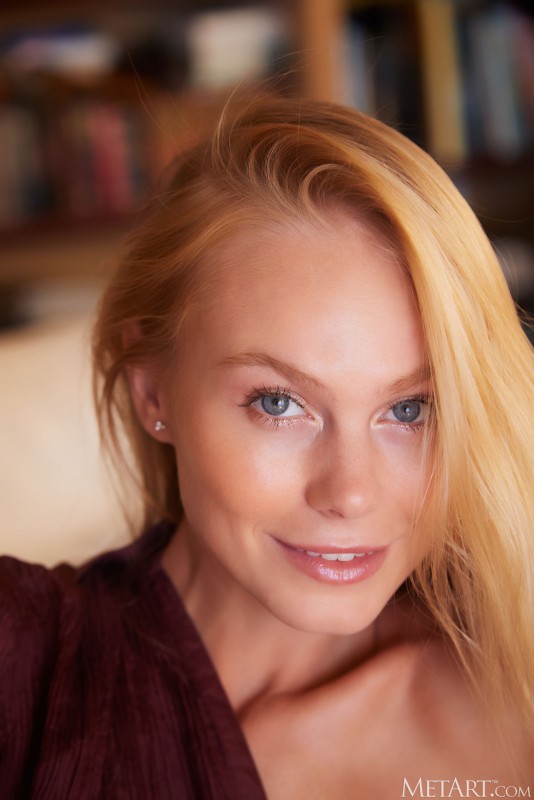 Страстно сорвав с себя всю одежду, красивая эротическая модель с маленькой упругой попой умело позирует перед камерой голой. Развратно извиваясь на столе всем телом, сексуальная блондинка с красивыми сиськами широко раздвигает длинные ноги и крупным планом хвастается своей бритой розовой киской.