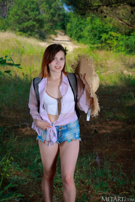 Кокетливо сняв с себя короткие шортики и майку, горячая телочка без стеснения демонстрирует свои аппетитные прелести в лесу. Возбуждающе трогая себя в разных чувствительных местах, сексуальная барышня с упругой грудью и подтянутой задницей интригующе раскрывает для нас между ног свою сладкую киску с маленькой прической на лобке.