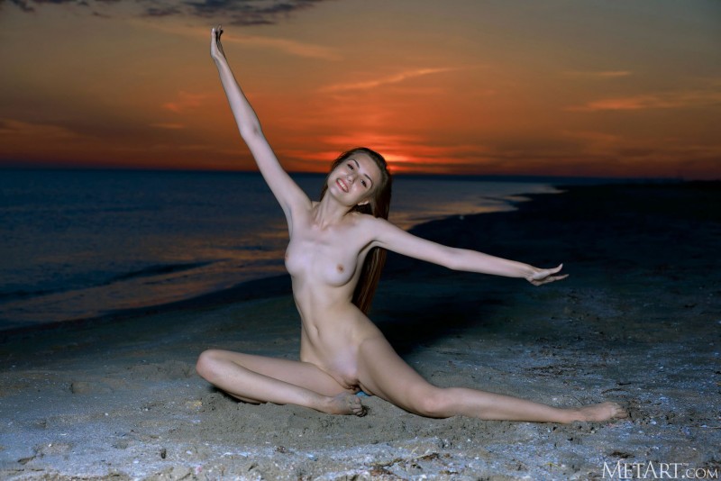 Светя перед камерой своими миниатюрными нежными сиськами и медленно стягивая с себя джинсовые шортики, худая девица с разных ракурсов показывает свои голые прелести на пляже и, страстно извиваясь на теплом песке, приглашающе раскрывает между длинными ногами бритую сочную пиздёнку.