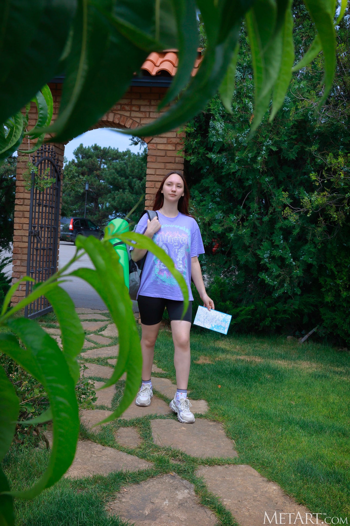 Отправившись в небольшое путешествие по парку и бесстыже раздевшись перед камерой в тихом безлюдном месте, горячая шатенка с большими сиськами энергично позирует голой в каких-то кустах. Похотливо повиляв крупным планом сочной жопкой, сексуальная бабёнка ложится на землю и с широко раскрытыми бёдрами вовсю светит своей бритой маленькой писькой.