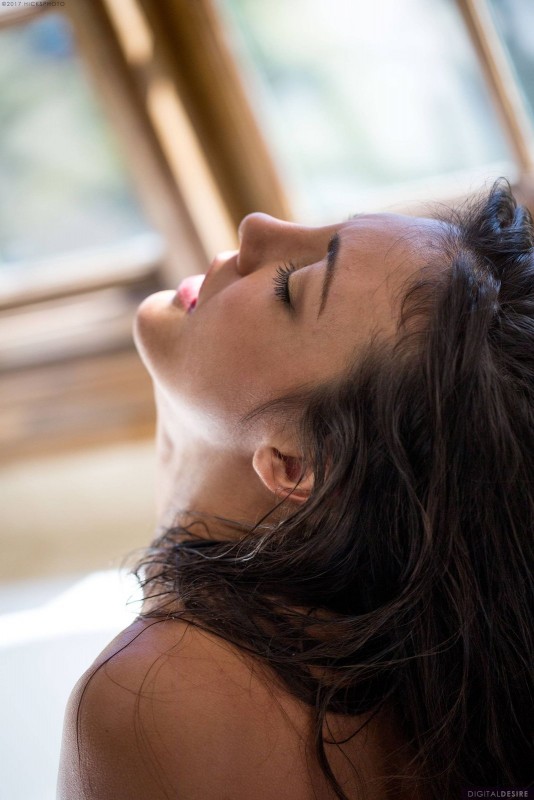 На этих замечательных фото мокрая и совершенно голая девушка моется в ванной, тщательно обливая своё упругое тело из лейки душа. Брюнетка наслаждается когда струя воды ласкает её красивую спину и нежно стекая по упругой попке отправляется ниже. Но и нас красавица не оставит без "сладкого", позволив взглянуть в самых откровенных позах, в том числе и раком, на её мокрую подтянутую задницу и гладко выбритую письку, которые так и напрашиваются на страстные ласки горячего любовника...