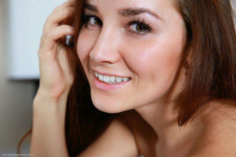 Абсолютно голенькая рыжая девушка с безумно красивым телом красуется перед камерой, предоставляя нам шанс насладиться её замечательными формами. Принимая самые возбуждающие позы, молодая красавица показывает маленькую грудь, красивую волосатую письку и упругую попку глядя на которые хочется бросить всё и бежать к этой милашке...