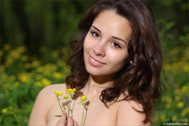Безумно красива и совершенно голая девушка позирует на небольшой лужайке в жёлтых цветах. Стройная брюнетка с упругим телом безупречно смотрится на таком живописном фоне. Ослепительная улыбка, небольшая упругая грудь и голая бритая писька с очаровательной попкой - всё это нам посчастливится увидеть у этой озорной красавицы...