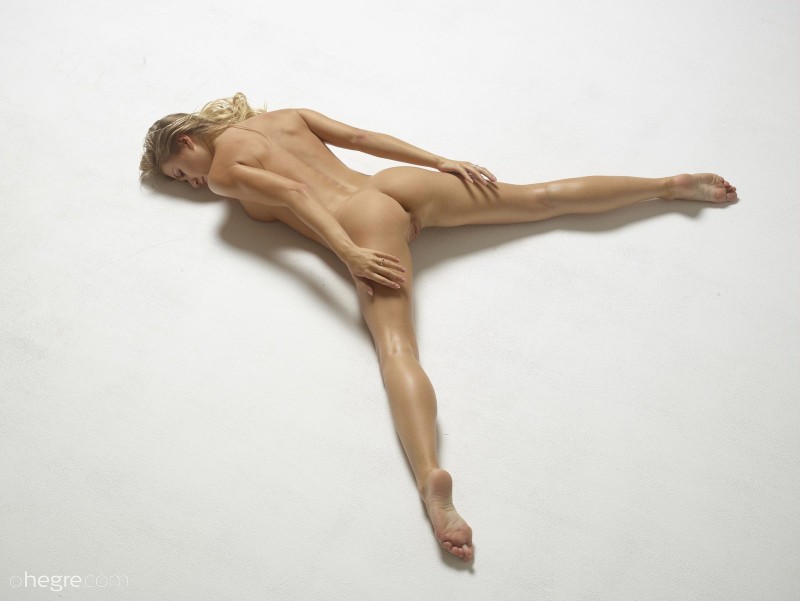 Сексуальная блондинка намазанная маслом голая лежит на полу и соблазнительно позирует перед фотографом. Демонстрируя свою стройную фигуру, девушка позволяет нам взглянуть на упругую грудь, симпатичную голую попку и возбуждающую бритую киску которая так и манит с экрана монитора...