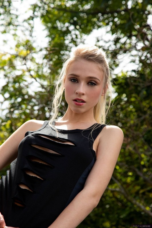 Стянув с себя лосины и чёрные трусики, развратная краля оказалась совершенно голой. Широко раздвинув стройные ножки, девушка показала бритую киску, нежно поглаживая её своими пальчиками. Кроме того, модель позволила взглянуть на свои сиськи среднего размера.