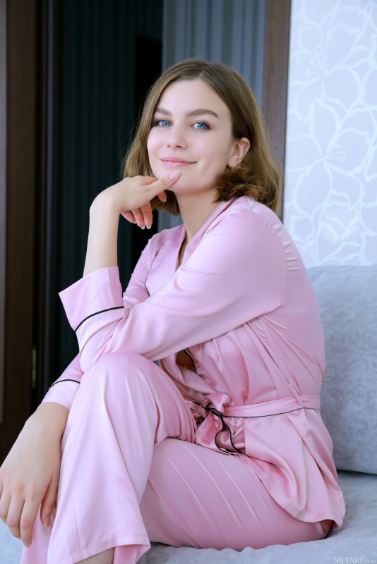 Умело пользуясь для соблазнения своим телом, нежная любовница эротично снимает с себя шелковый розовый костюм и без стеснения демонстрирует выбранному мужчине голые прелести. Страстно извиваясь на диване в самых развратных позах, стройная красавица с упругими титечками нетерпеливо просит поскорей привести свой член в боевую готовность и хорошенько оттрахать им бритую текущую киску.