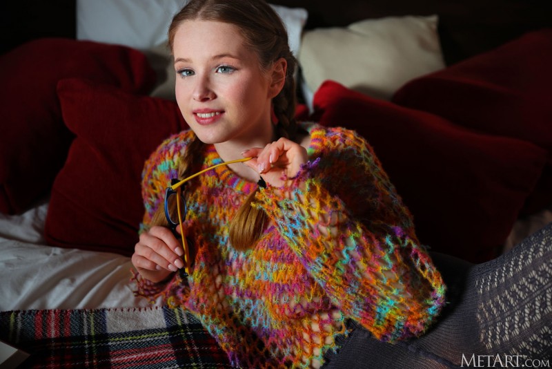 Оголив под кофточкой свои натуральные упругие буфера, игривая девица эротично снимает колготки и вовсю хвастается между красивых ног своей гладкой розовой писей. Раздевшись до гола, стройная барышня ложится на кровать и приглашает любого желающего хорошенько ее трахнуть.