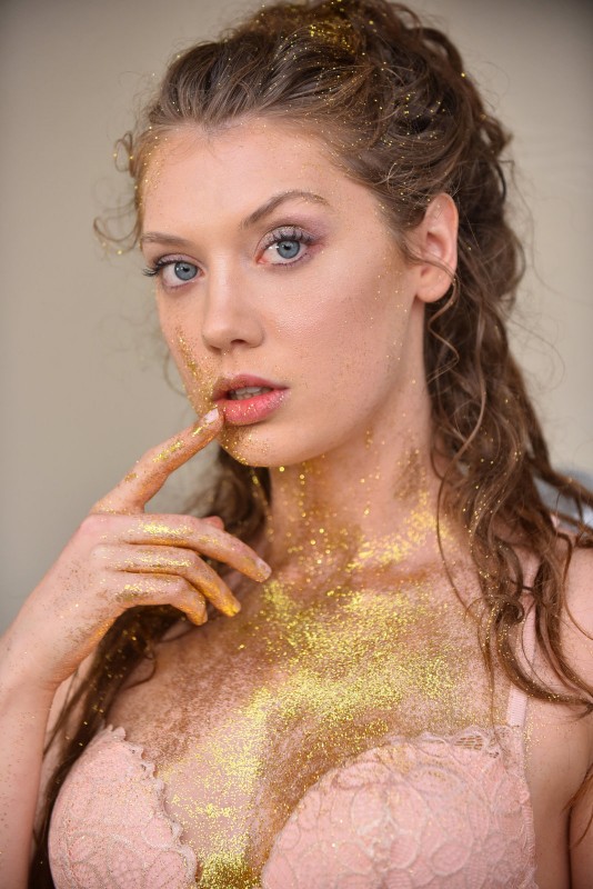 Фото эротика » Голые письки » Голая золотая девушка в блёстках