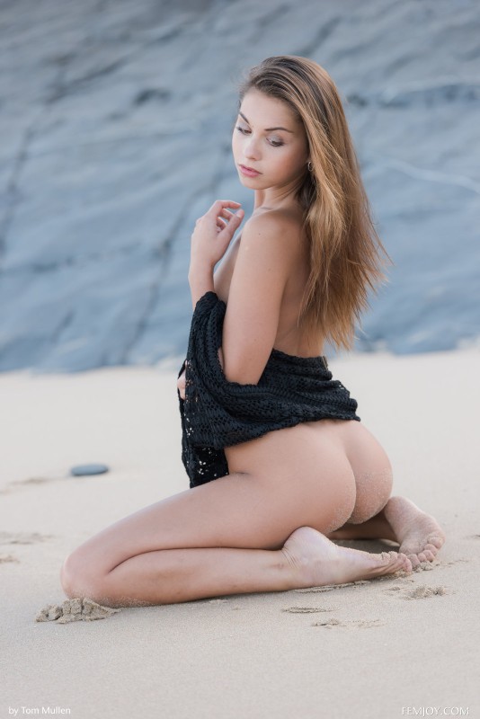 Красивая девушка сняла купальник на пляже и голая встала раком, показывая нам шикарную попку испачканную в песке. Этим красавица не ограничилась и принимая другие позы позволила взглянуть на её маленькую грудь с красивыми сосками и великолепную бритую письку. А что бы избавиться от посторонних взглядов, девушка пришла на пляж пораньше утром, пока там никого нет...