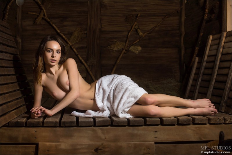 Голая русская девушка в деревенской бане