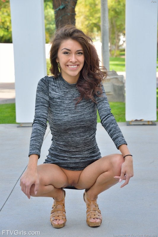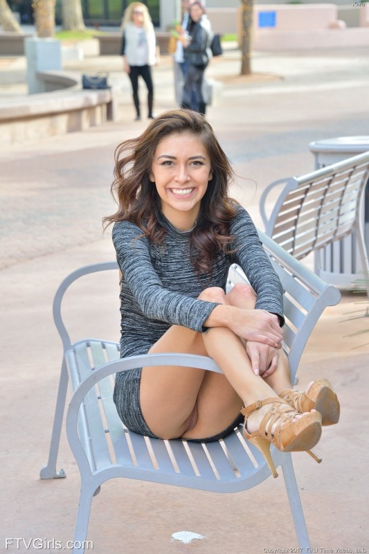 У обольстительной стройной девушки в довольно строгом платье видно бритую письку под короткой юбкой, которая кокетливо задирается когда девушка нагибается поднять что-то с земли. Совсем не стесняясь такой ситуации, красавица продолжает задирать свою юбочку и ещё более откровенно демонстрировать нам голую киску, которая так возбуждающе выглядывает из под подола...