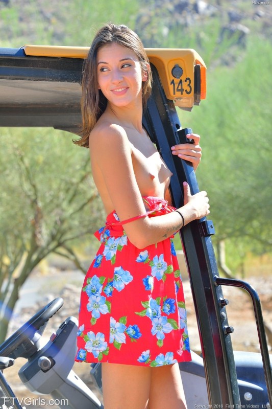 Очаровательная деревенская красотка в летнем платье без трусов под ним позирует на тракторе, то и дело задирая свою коротенькую юбку. Восседая на спецтехнике, девушка демонстрирует нам свою соблазнительную упругую попку, бритую письку с волосатым лобком и маленькие, но весьма притягательные сиськи с симпатичными сосочками.