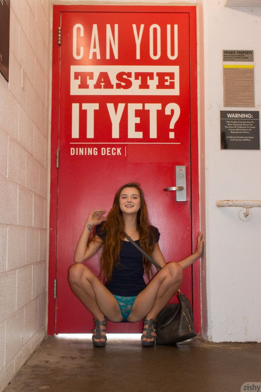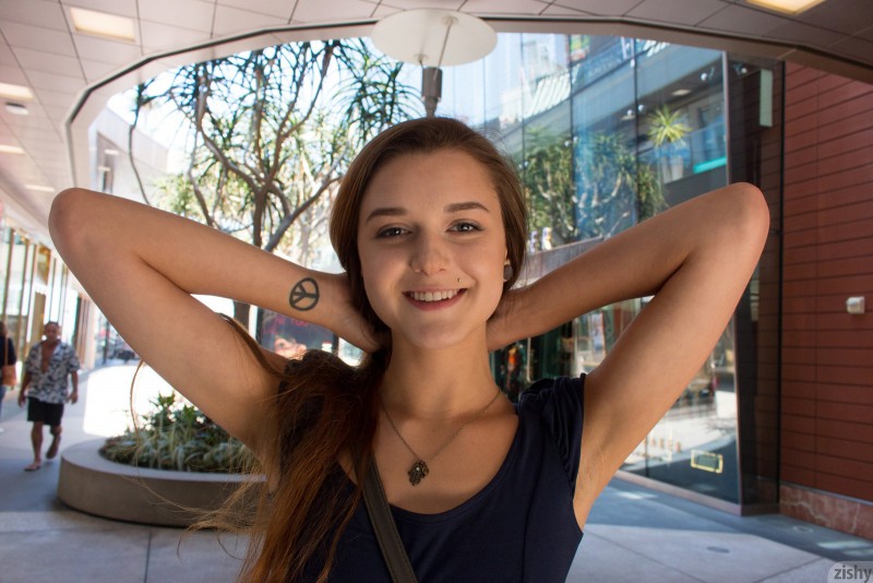 Обаятельная молодая девушка задирает юбку платья и показывает под ней свои стринги, которые так и просятся быть снятыми. Всё это красавица проворачивает на улице и в торговом центре, не смущаясь что её могут увидеть прохожие. Вернувшись же домой, милашка решает продолжить свои соблазнительные игры перед фото камерой и крупным планом демонстрирует нам свою сочную попку в стрингах, раздвигая ягодицы руками...
