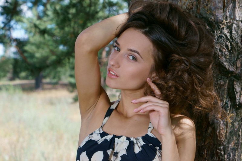 Фото эротика » Голые попки » Девушка сняла нижнее бельё на природе под сосной