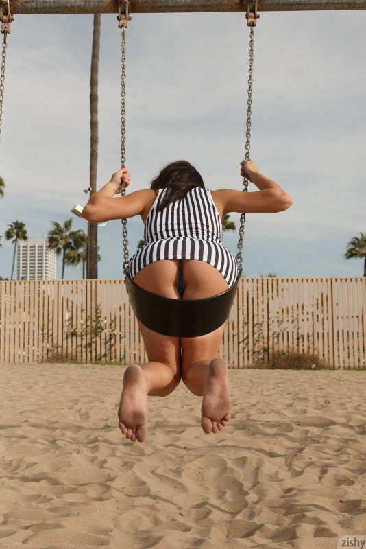 Сексуальная девушка гуляет по пляжу и спуская трусики показывает нам свою попу с аппетитными ягодицами. Милашка очень соблазнительна и каждое новое фото с ней возбуждает пуще предыдущего. К тому же модель постоянно пытается заигрывать со своими зрителями, от чего смотреть на неё без возбуждения практически невозможно...